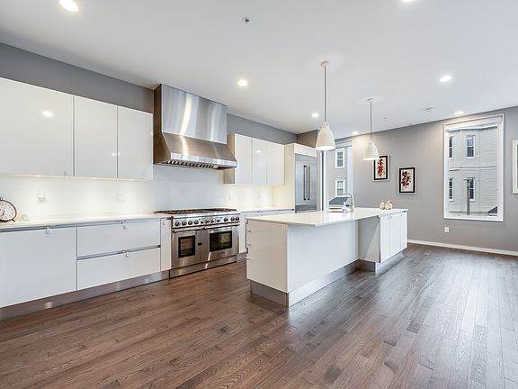 Available 9/1! A stunning, sun-filled condo in the heart of South Boston, offering the perfect blend of modern design and functional layout. Upon entry, you're greeted by a spacious foyer with bonus storage, setting the tone for the thoughtful interior. The two bedrooms are ideally located on opposite sides of the home, providing enhanced privacy perfect for roommates, guests, or a home office setup. The primary suite features expansive southwest-facing windows and a luxurious en-suite bath with a double vanity. Designed with contemporary living in mind, this residence showcases soaring 10-foot ceilings and oversized windows that flood the space with natural light. The open-concept kitchen is a standout, equipped with custom Italian cabinetry, white Silestone countertops, and high-end Thermador stainless steel appliances.Additional highlights include grey ash flooring throughout, a cozy fireplace, in-unit washer and dryer, central air, and a deeded garage parking space. Landlord pays water & sewer, tenant(s) cover gas, electricity, and all other utilities. 12 month lease beginning 9/1/25.