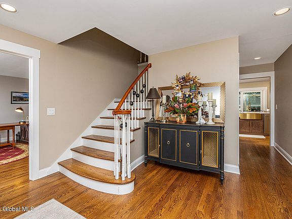 Experience a rare blend of sophistication and comfort on 1.3 Acres of serene beauty in the heart of Loudonville. This exquisite home boasts updates galore w/its gorgeous gourmet quartz kitchen, custom mudroom, renovated half bath, heated sunroom & large 1st Fl study/den w/gas FP. Its lavish Primary Suite offers a stunning remodeled full bath, walk in closet & gleaming hardwoods. Plus, there is an expansive 2nd Fl rec rm w/full bath & laundry, ideal for in law/multi generational living. The outstanding backyard oasis features a Grecian saltwater pool, koi pond, renovated cabana w/half bath and shower & plenty of flat green space ideal for outdoor activities! Every detail of this dream home is designed for luxury and effortless living, don't wait to make it your own!