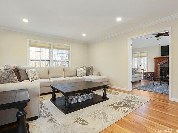There's still time to call this lovely colonial, "HOME" for the New Year's Holiday. Enjoy cul de sac living in a lovey country setting . This center hall colonial enjoys hardwood floors throughout the house. Large dining room with fireplace, light and bright living room and cozy family room with new pellet stove all offer many options for everyday living as well as entertaining. Updated eat in kitchen with granite counters, island and stainless steel appliances overlooks private back yard that abuts conservation land. You'll never had to worry about anyone building behind you The second floor offers a spacious master bedroom with beams, full bath and walk in closet. Three additional bedrooms and hall bath with double sinks complete the level. Look forward to next Spring to enjoy the double level deck. There is a shed and a chicken coop as well. A terrific ride your bike street. Convenient to schools, fields, train station, Wilton Family Y, Caraluzzis and much more.