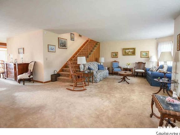 Large 5 BR, 4 full bath home nestled among the other homes on Lake Springfield. Kitchen, DR, & master BR have newer Hunter Douglas blinds. All bedrooms have large closets or walk-in. W/D can be moved to main floor by garage. Over-sized heated/AC garage w/loft. Plenty of room for a workshop, boat, woodworking, & storage. Second kitchen in lower level w/appliances. There is more storage than you will ever need. Beautiful yard & so much more!
