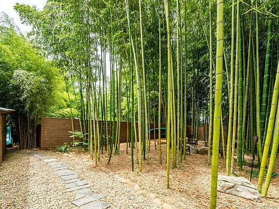 Unique Asian-inspired Craftsman in walkable N. Asheville, plus adjacent lot. See 3D tour! Located at end of a one-lane quiet, private road. Nestled in a peaceful bamboo forest. 3 covered outdoor areas - spacious front porch, lower deck, and upper deck w/ beautiful sunset views. Plenty of fun at home options - hot tub overlooking bamboo, boulder rock firepit, kids club house, bocce ball court, garden beds, etc. Rockscaping accentuates natural beauty. Private office w/ built-ins. Quality finishes throughout - stone fireplace, wood mirrors, wood slab accents, walk-in closets, wood shelving in all closets, 9’ ceilings, crown moldings, digital dimmers. Granite breakfast bar, stainless appliances, mosaic tile, pantry. Granite and tile baths with jacuzzi tub, double sink vanity. Storage space in sheds and walk-in crawl space. Walk to UNCA, Botanical Gardens, farmers market, 2 UNCA urban forests with acres of hiking trails, expanding greenway, parks. Bike to downtown & River Arts.