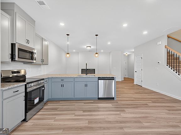 Move in Ready! The Maddux II floorplan located in Smith Douglas Homes Franklin Manor community. EXTRA Special incentives available with use of preferred lender on this home. Location, Location, Location! Enjoy lots of natural light in our beautiful Maddux II. The spacious kitchen with granite countertops, a large peninsula with counter seating, beautiful upgraded cabinetry including 42" uppers AND an upgraded appliance package. Open to the fireside family room with a linear fireplace. The open concept provides access to the rear patio where you'll find a comfortable outdoor living area or spending time outdoors.Upgraded Vinyl Plank flooring throughout the main level. A wide staircase with iron rails leads to the secondary bedrooms and primary suite with a tray ceiling. The primary bath has a double vanity and large shower. Laundry room with included washer and dryer. Full house Blinds and screens included. Nine foot ceiling heights on both levels. Lawn maintenance is included in your HOA! Photos of home some furnished photos representative of plan. Extra special seller incentives with use of preferred lender. Tour anytime with our NTERNOW self guided lockbox