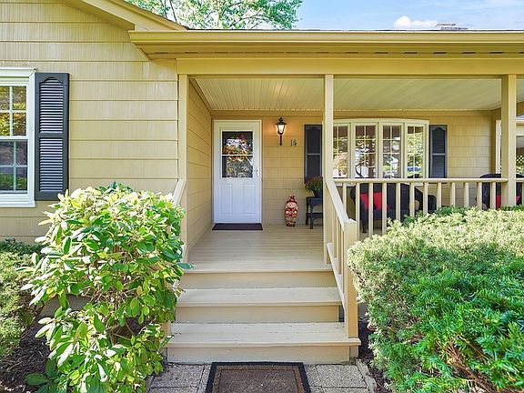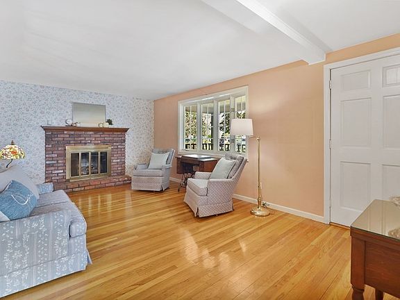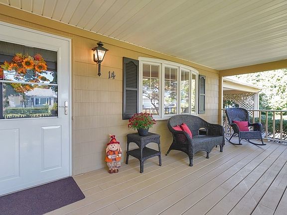 Neat, sweet & petite! Fall in love w/ this adorable Ranch featuring gleaming hardwood floors, open-airy floor plan & private back yard. Be greeted by a covered front porch, perfect for sipping your favorite beverage on. The main entry leads into the living room w/ sightlines into the dining room & kitchen & is centered around a brick fireplace & picture window. Once a 3rd bedroom, the dining room has been opened up to the main living area. A double closet & built-in full-length mirror are found in the primary bedroom, while the guest room has been upgraded w/ sliders to a private rear deck which would also make for a great office or den. Enjoy an eat-in-kitchen w/ all appliances included & tiled bath w/ linen storage. Ample storage is found in the lower level, including a small workshop, storage room, laundry area w/ set tub & electric baseboard heat for future living space. An oversized carport, storage shed & fenced yard w/ mature plantings complete this home, at a dead-end location.