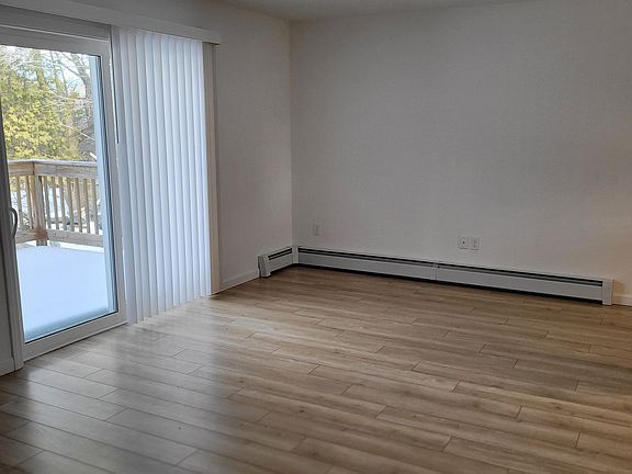 AVAILABLE NOW! New Construction 2 full bath units are Rare and units with storage are even rarer Yes who knew the middle of Bangor had large quiet location left? Great location right behind Bangor High school and beside 25 acre Prentiss Woods forest preserve with walking trails. This location is quiet, roomy and yet just a minute to anything in Bangor. They are designed with you in mind. All wood floors & ceramic tile thru out (yes no carpet anywhere but the stairs). 1st floor has entry, nice kitchen with dishwasher, pantry and stainless appliances. Kitchen is open to Living room/Dining Room area with breakfast bar and there's a sliding door to large back deck with room for table set & grill. 3/4 bath finishes the 1st floor so there's a bath on each level which is unusual in our area. Full basement for storage down stairs means you don't have to rent a storage area off site. 2nd floor has large master designed with room for king size bedroom set plus it has both a walk-in closet and 2nd bonus closet. Full bath and good size 2nd bedroom also are upstairs. Price includes heat, sewer, lawn and snow and is $1950 for single occupancy $2050 for double or $2150 for triple occupancy which is maximum. Tenant just pays electric bill and small water bill. Good parking with 1 or 2 spots per unit available. Inquire with questions and tours are available! Pets are negotiable so just ask and This is available NOW! Video tour of unit next door of same exact design below Unit Available is not the end unit.