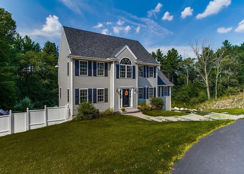 ONLY $329,900! Well appointed 4 bedroom 2.5 bath colonial located in sought after cul-de-sac neighborhood. This young home has so much to offer its new owner(s) & you will fall in love the moment you open the front door. Loaded with amenities this home boasts: *Modern kitchen with center island, stainless steel appliances, pantry closet, tiled flooring, eat-in area & sliders to back 20x12 deck. *Sun-filled family with cathedral ceilings & fireplace. *Formal dining room has hardwood flooring and raised panel wainscoting. *Spacious living room has a bonus room that would be an ideal home office or playroom. *Second floor offers 4 well proportioned bedrooms including a master suite with cathedral ceilings, walk-in closet & bath. *Laundry is conveniently located on 2nd floor. *Additional features include: central a/c, walk out basement that is ready to be finished and 2 car garage. Fantastic commuter location with easy access to Rt's 395/290 & MA Pike!