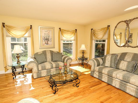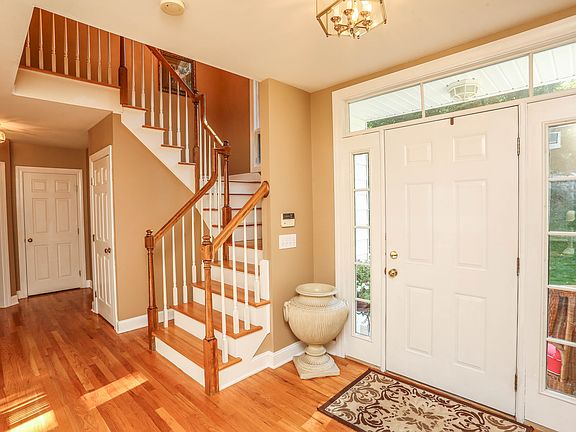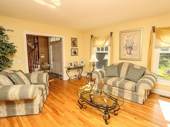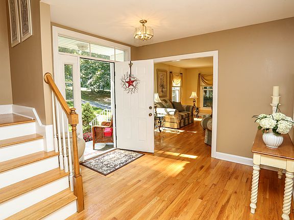 Stately Colonial in a tranquil setting with manicured landscaping. Handsome, refined styling and proportion define the meticulous interior. Lovely foyer with sidelight and transom windows introduces traditional floor plan. Spacious rooms bathed in natural light with over sized doorways, intricate mouldings and hardwood floors throughout. Formal living and dining room. Well appointed kitchen with double wall ovens, cook top and breakfast bar, hutch, recessed lights, and dining area with sliders to deck. Large, comfortable family room features brick fireplace, recessed lights, sliders to deck. Upstairs master bedroom suite with tray ceiling, full bath, jacuzzi tub, stall shower, double vanity. 3 add bedrooms, laundry and full bath. Lower level playroom, 1/2 bath, pantry, sliders to patio.
