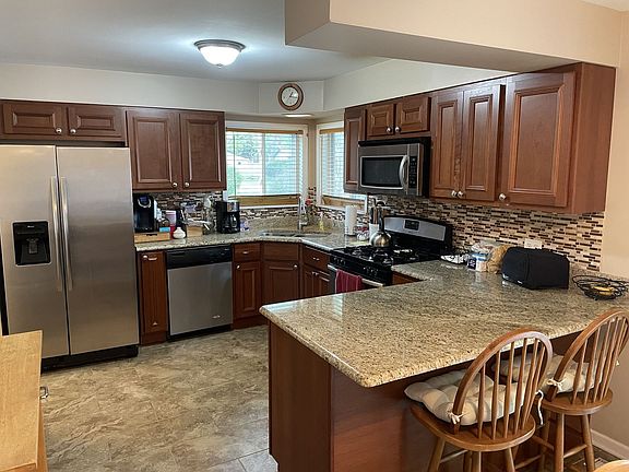 Prime downtown location 1 block from the Fox River on the west side. Well cared for Cape Cod style home features many updates within the past 5 years, including but not limited to new kitchen cabinets, stainless appliances, granite counters, flooring and fixtures. Kitchen has breakfast bar as well as eating area with sliding door providing easy access to the rear deck and back yard. New siding was installed approximately 3 years ago. 4 bedrooms, 2 full baths and full unfinished basement w/ tons of space storage or ready to be finished! First floor has stackable washer/dryer, but there is also a laundry room in the spacious basement. Forced air and hot water heat and a/c system. Oversized 2 car detached garage, white picket fenced back yard. Property is currently tenant occupied - tenants in process of packing to move out early June. Agent owned.