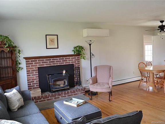 Move right in! Excellent opportunity for first-time buyers or condo move-up. This Ranch-style home is freshly painted and sits on 1.2 acres of perfectly level land. The additional 600sf of finished space in the lower level is an unquestionable bonus. The main level boasts hardwood floors and a fireplace with wood-burning stove in the living room. The kitchen and baths have been remodeled. The kitchens generous dining area, includes sliders to the multi-level deck, an ideal setting for dining or entertaining in the large, private, park-like back yard. Cooling is provided by a brand new mini-split system. Conveniently located with easy access to the shops and restaurants of New Milford or a quick jaunt to NYS. Better act quickly!