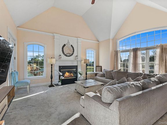Welcome to 14 Kari Blvd, a classically elegant brick Colonial home that spans over 7,000 finished square feet. Nestled in a serene park-like setting, the property has mountain views and offers ultimate privacy at the end of a quiet cul-de-sac. A grand entrance is provided by a long, meandering driveway, leading you to a residence that showcases quality craftsmanship adorned with millwork, hand-made moldings, and handrails. Designed with entertaining in mind, this home features a vast wrap-around deck that seamlessly connects the kitchen, dining room, and an expansive, sunlit family room. These spaces are perfect for hosting gatherings, offering seamless indoor and outdoor enjoyment. The primary suite is a true retreat, complete with two generous walk-in closets and a luxurious bathroom that includes a five-person hot tub! The upper floor is rounded out with two additional well-sized bedrooms and two full bathrooms, accommodating family and guests comfortably. For those needing extra space, the property includes a full in-law suite with a bedroom and den plus a full bath. Walk up the stairs to a gigantic attic and there's a walkout basement too ! The basement features an extra bay, ideal for a third car, utility vehicle or even a boat, catering to all your storage needs. Explore this magnificent home where elegance meets functionality, all set against the backdrop of stunning natural beauty.