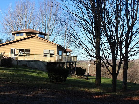 Expansive custom built contemporary sitting on 1.21 acres at end of cul-de-sac with great views from the observation level or the wrap-around deck. The main level offers a large kitchen with many useful features, center island, Kraft-maid cabinets and eat-in area. Large living room with gas FP and many windows to enjoy the views. Three spacious bedrooms, 2 full baths, laundry, storage and bonus rooms. The unique middle room has many purposes and features french-doors to close off and a spiral staircase going up to the 2nd floor observatory loft. The finished walk-out lower level offers a 2nd kitchen, full bath, and plenty of finished rooms to expand your living space or to use as an accessory unit. Both levels are handicap friendly. Plenty of closets and storage on both levels. Rear deck leads to a gazebo. Oversized 3 car detached garage and large shed. Subject to 5 day first look period, certain restrictions may apply.