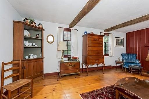 - Fam Dscrp: Fireplace, Open Floor Plan, Exterior Access, Window(s) - Bay/Bow/Box, Ceiling - Beamed, Flooring - Vinyl, Chair Rail