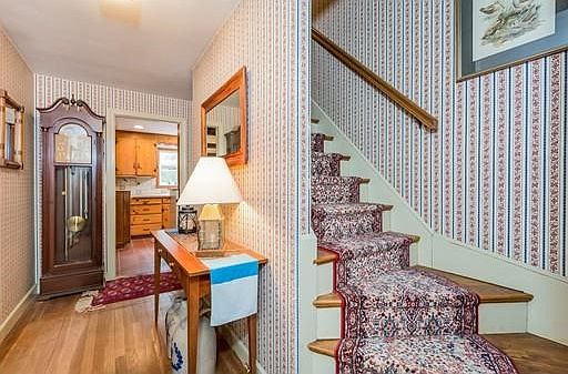 Quintesenntial N.E. Cape Loaded With Character And Curb Apeal. Beautiful, Private Back Yard With Stone Walls Bordering Woods. Wood Pine Flooring Throughout Most Of Home. Large Step Down Living Room With Fireplace. Formal Dining Room, Kitchen With Green House Window, Craftsman Cabinets. Kitchen Offers Large Dining Area, Open To Beamed Family Room With Fireplace and New Bay Window. Full Bath On First Floor With Master Bedroom and Guest Bedroom. Upstairs Loaded With Storage, Closets and Built Ins. 2 More Bedrooms and Full Bath Complete The Upstairs. Semi-Finished Unheated Lower Level With 3rd Fireplace. Attached 2 Car Garage. Roof And Heating Have Been Updated. Lovely Kay St. Neighborhood Minutes To Train Station.
