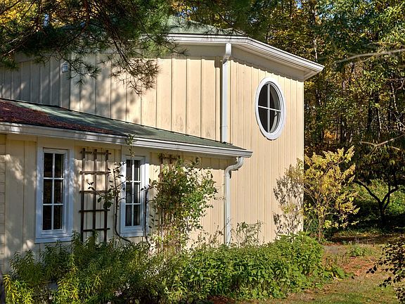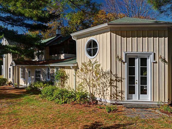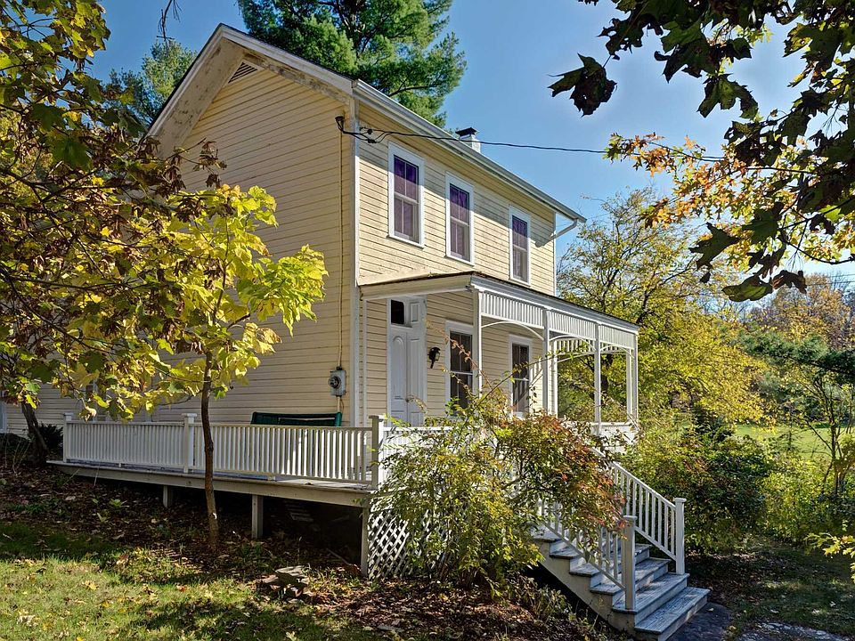 This charming 1890's village home in the historic and welcoming hamlet of Rhinecliff rests in a beautifully landscaped private setting complete with koi pond and rock outcroppings. The house features a simple bright kitchen, nicely proportioned rooms and a screened sleeping porch on the second floor. Currently a 2 bedroom, the striking octagonal great room with fireplace and French doors to the yard could easily become a first floor master suite. The octagon shape has long been a symbolic architectural theme representing regeneration and renewal. And that is what this country property offers: simplicity and beauty. Includes a vintage 500 sq. ft. guest cottage/artist studio. Walk to Amtrak and the Hudson River or drive 3 minutes into the vibrant and popular Village of Rhinebeck.