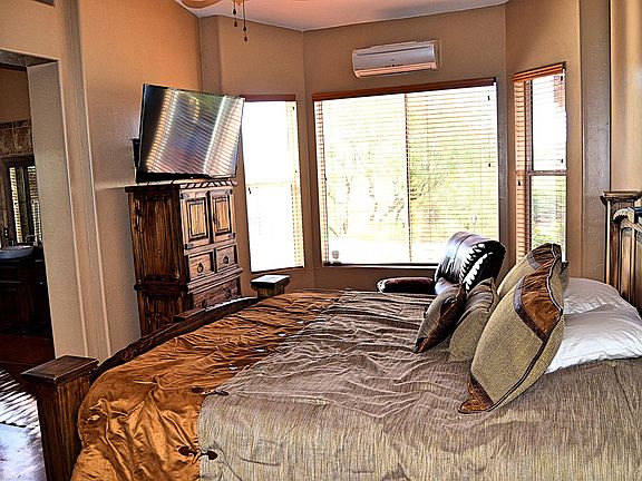 Best views in Rio Rico! Beautiful 3 bedroom 2 bath. 3 car garage, wood burning fireplace in great room, formal living area with built in wine rack, office/den with built-in shelves. Vanishing edge heated pool w/ hot tub, built in BBQ with beehive fireplace and shaded area great for entertaining while enjoying the great sunsets all from your own backyard oasis! A MUST SEE!