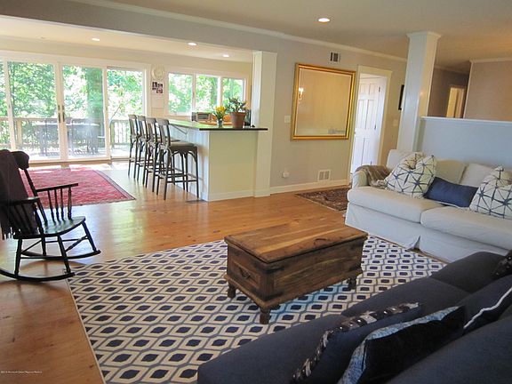 High in the hills of Atlantic Highlands you will find relaxing peace & quiet in this lovely home! Located on a cul de sac street with privacy among the trees! The main level has 3 bedrooms & 2 modern baths, including a master ensuite! Generous rooms, HW flrs, w/ large living room & great flow to the dining room & big chefs kitchen w/ breakfast bar where you can fix your gaze on the amazing water views of Sandy Hook Bay & the Atlantic Ocean! Go thru the slider to your outdoor entertaining area & unobstructed views! The lower level has a 4th bedroom & full bath as well as a family room w/ fireplace along with a slider to patio! This is truly a piece of paradise on nearly .5 acre amongst the trees! Just mins to town, restaurants, movies, galleries & NYC Ferry! Close to Beaches!