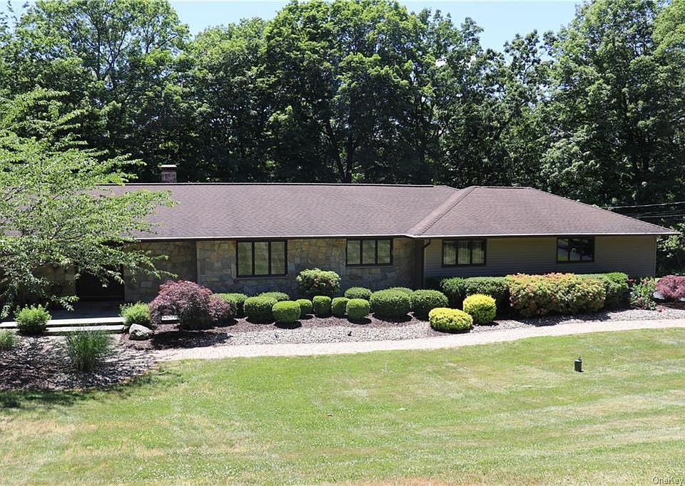 Back on the Market - This is your opportunity to own this magnificent contemporary ranch at a most fabulous convenient location and price. This Energy efficient four-bedroom, three and a half baths with three plus cars attached garage seated on a beautifully manicured lawn home is located less than three minutes from the Taconic State Parkway. Come and open the majestic front door to reveal this most unique custom-built ranch. You will immediately fall in love with the sunken Living Room, the huge two-sided stone fireplace and the formal dining room. WOW! a very attractive three-season room for the afternoon siesta. Now it is time to make your way to the oversized Family Room with the other oversized stone fireplace and sliding door to the beautifully manicured backyard and be amazed at the amount of space and endless room for storing your valuables.