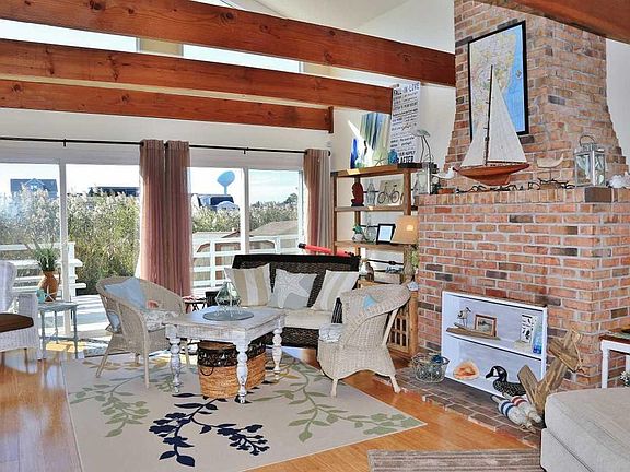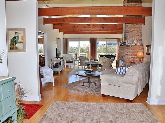 Welcome home to your Coastal Cottage! You will be wowed the moment you walk in the front door... open, stunning and spacious living room featuring cathedral ceilings with rafters, a cozy brick wood-burning fireplace to warm up your winters, and a loft. Sliders off the living room allow lots of natural light and lead out onto a 10 x 40 rear deck where you can enjoy the fresh breezes and nice back yard. This roomy rancher was beautifully remodeled throughout in 2014 including bamboo floors, new kitchen with rich wood cabinets, granite counters and mostly SS appliances, new roof and new HVAC. New siding was just done in 2016. You have to come see this lovely home that is nestled perfectly on the the 6th fairway of the Links Golf Course, and near the Elementary/Middle school.