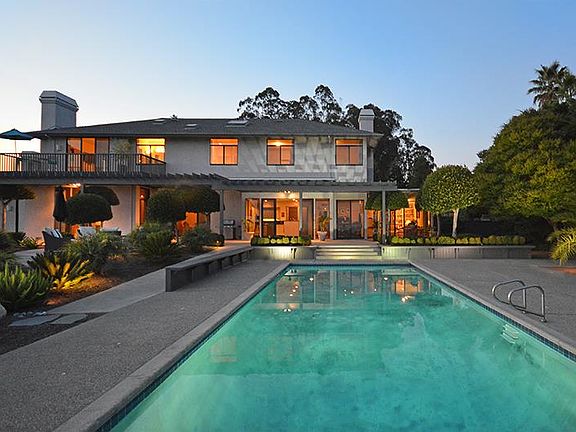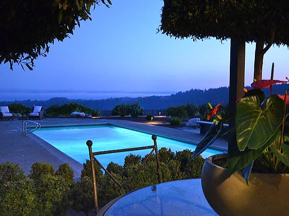 Private 5.500 sq.ft hilltop estate, designed by SF architects Wurster and Hinds, with sweeping view of the Monterey Bay. High in prestigious Pasatiempo Estates gated community, with MacKenzie designed golf course, the dramatic double door entry opens to breathtaking views of the ocean. Nowhere in Santa Cruz County will you find this extraordinary vista. Open floor plan is designed for regal galas and indoor-outdoor entertaining, whether for a comfortable family get together or a wedding! Pool is surrounded by bluestone patios, bougainvillea, fern, palms ,sweeping pergola , natural gas BBQ and gazebo. Every room in the house enjoys a jaw dropping 180 degree view of the Monterey Bay ,City lights. all framed by the impressive 11 foot coved ceilings. All bedrooms are en suite with extensive built in custom cabinets. There is a ground floor guest suite privately situated with its own patio area.The master bath has double vanities, walk in cedar lined closets, spa tub with bay views.