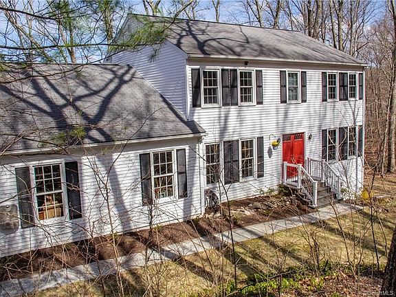 This spacious four bedroom, two and 1/2 bath center hall colonial is situated in a picturesque and private setting. It abuts a 14 acre nature preserve in quiet neighborhood, so enjoy privacy and nature, while at the same time being situated close to I84 for ease of commuting. This meticulously maintained home has recently installed, highest-quality windows and doors and as you enter through the front double doors, you will notice the brand new front porch replaced with composite decking. The main level features hardwood flooring throughout with spacious rooms which accommodate multiple uses- currently, office, game room, dining room and a large family room with recently installed surround sound. The sizable eat in kitchen opens to a wonderful screened in porch in which to relax and watch the abundant wildlife that frequents the property. A laundry room and powder room complete the main level. Upstairs, the four bedrooms, two full bathrooms, are all large with the master bedroom featuring en-suite bathroom, walk in closet and enormous bonus space for a home office, sitting room, workout/exercise room, artist studio...use your imagination. The walkout basement offers an additional 1300 sq ft which could easily be finished.