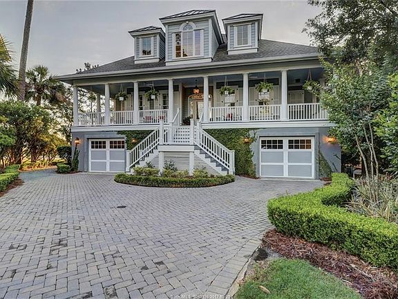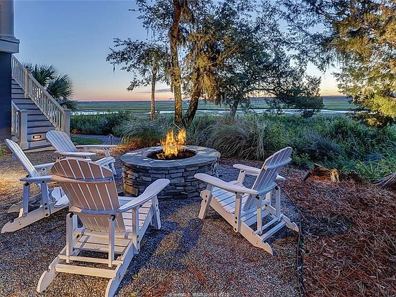 Location, views, and value! Located on an island off of an island, this spectacular home is only surpassed with the long marsh and river views! Enjoy the views from your outdoor, private hot tub, or s'mores while sitting around the fire pit. After dinner relax with a cocktail from the rocking chairs on the porch. Guests will not want to leave their gorgeous guest suites opening to upper decks with sweeping views of the Colleton River and marshes. First floor master suite with private deck, study/extra bedroom, butler's pantry, and a two story great room with stone faced gas fireplace. This beautifully designed and decorated home has it all, including antique pine floors, a cook's kitchen, open floor plan, dining room, elevator, and a car buff's dream with storage for four cars! Come see for yourself before others find it!