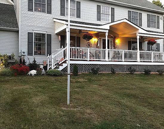 Step up onto the large rustic inviting front porch then into this well insulated center hall colonial built in 1992. addition was added onto main house in 2008 and has a big loft bonus/guest room, a wet bar , a great room/entertainment room and den! very large finished basement/recreation room that adds 1000 sq ft of additional, convenient usable space. unfinished storage room. separate utility room. nice bright laundry room off garage. nice size modern French country kitchen with ceramic tiles, new white glass face lighted cabinets and granite counters! . many large full length windows with grills.2 full baths in upstairs , half bath off kitchen and bath in addition. 4 separate zones for both heat and central a/c. very large stand-up full length attic with pull down stairs and an additional pull down stairs to smaller attic over bonus room! beautifully kept mature landscaping. many fruit trees! Storage shed. landscaping and flowers around stone patio in rear. large fenced in dog area. 2 wooden decks in rear. french door opens to upper level small deck off the nicely sized guest bedroom/bonus room. interior french doors off living room. dining room. family room with fireplace off kitchen. separate entrances into addition from outside as well as off laundry room. 2 nice sized bedrooms and 1 very large master bedroom with private bath and 2 walk in closets . (very bright natural lighting in all rooms). hardwood floors throughout! carpeting in bedrooms only. plenty of closet space throughout house and in each bathroom! pantry. 2 new garage doors with electric openers. Built in alarm system! Cable tv and internet throughout. Whole house GENERAC generator(never will be without power) ABSOLUTELY NO WORK NEEDED! Neighborhood Description our beautiful home is located on a very nice country road. many of the houses are set back from road on private settings and are set on large properties. very friendly neighbors . quiet living!