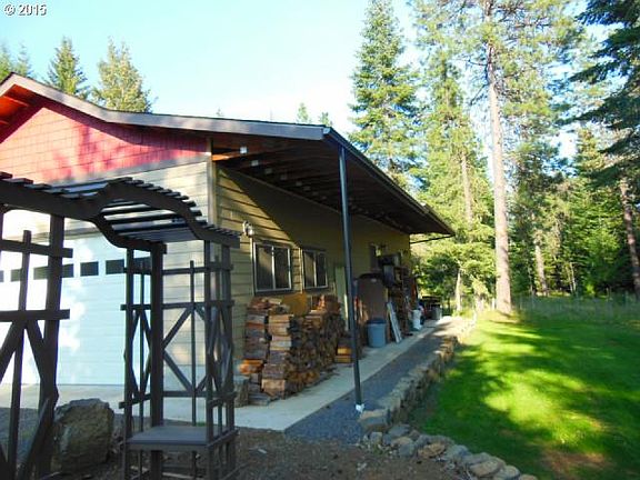 Charming newer home on 1/2 A. surrounded by trees. Lovely covered patio makes great entry to combo kitchen/dining/living area. This 2 bed/2bath home has a great room that is currently used as a wood shop. This room could easily be converted to a large rec room or space could be converted to another bedroom & still have room for another living space. Possibilities are endless or keep it just the way it is. Attached oversize 2 car garage