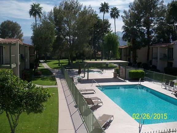 Location, location, location. 2 bedroom 1.5 bath condominium. Close to shopping public transit stops, schools and golf courses. The property is conveniently located near the Palm Springs Air Port and has community pools outdoor space and a lake. Water, trash, refrigerator, washer & dryer are also included. Don't hesitate call to see it today.