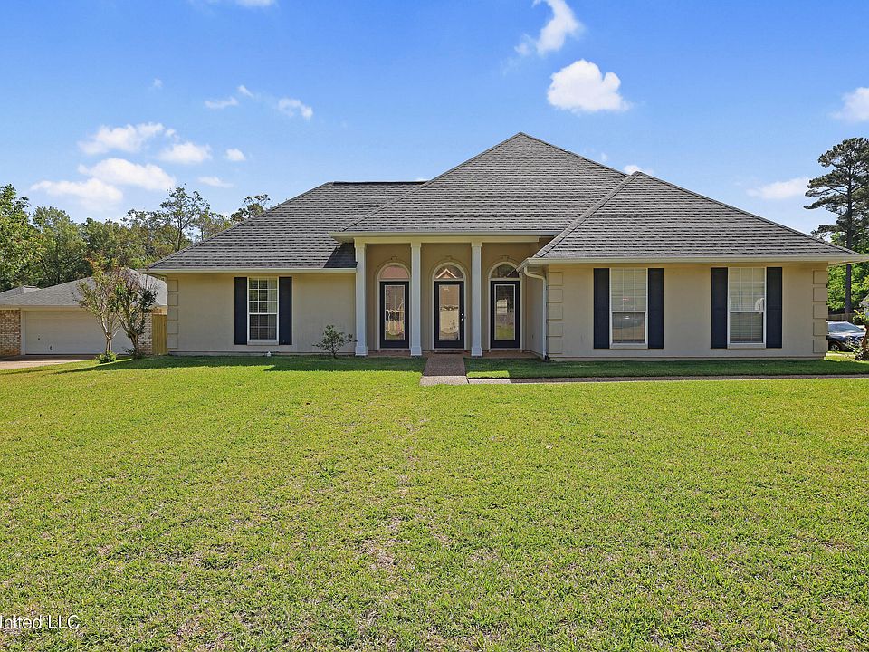 2 Garages - 1 Detached 24x24 2 Car Garage/Workshop w/220v Power & Oversized Main Garage! Corner Lot on Cul-De-Sac! Conveniently Located! Covered Porch & Patio! Great Fenced Backyard w/Reinforced Trailer Gate! New Floors in Living Room! Move-In Ready! 1 Year Old Water Heater! 3D Virtual Tour Available - Be sure to click the virtual tour link. This excellent 3 bedroom, 2 bathroom split plan home in Lamplighter provides quick access to Flowood & Brandon. The covered porch provides entry to the spacious living room w/high ceiling and large centerpiece w/built-ins separating it from the dining area. The dining area can be accessed from either side of the unique centerpiece that provides built-in shelving and storage on the living room side, a built-in desk and shelving at the side pass through, dinnerware storage and display on the dining side and coat closet at the garage entry. The dining area provides access to the patio areas, backyard and side entry to the detached garage. The kitchen is just off the dining area, boasts plenty of granite tile counter space, built-in microwave (4 yo) and plenty of cabinet storage. The fridge remains and the dishwasher is 2 years old. The primary suite is off the kitchen, just past the laundry closet. It is highlighted by a trey ceiling, double vanities, 2 walk-in closets and walk-in shower. The 2 remaining rooms are off the other side of the living room and have a privacy door at the living room entrance. The rooms are a good size and have hall access to the guest accessible full bath. Other features include a gas dryer hookup (currently capped off), oversized 2 car garage with quiet garage door opener, fenced backyard w/reinforced trailer gate, and detached 2 car garage w/220v outlet, its own driveway, the ability to be heated and cooled and brick siding to match the house. Call today for your private showing.