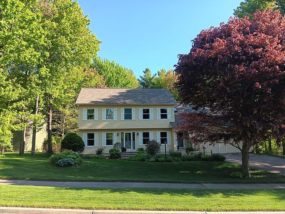 *** Presenting this Lang Farm Gem to the market. ***              The pride of ownership is evident from the curb and beyond and it will be a pleasure to show your Clients. There are upgrades throughout this middle aged dwelling and the home has timeless beauty...  Features include a vaulted great room with enhanced wood features, skylights, walls of windows and a fireplace.  The kitchen is expansive with stone counter tops, tile backsplash, crown moulding and a gas stove.  Tiled main/ secondary entries, formal living/ dining rooms and a nice sized powder room with laundry complete the first level.  The interior staircase welcomes you to the upper level with 4 good size bedrooms including a primary suite with upscale bath with radiant floor heat and a heated towel rack to provide a great start or finish to any day.  Check out the outside recreation areas, with wrap around deck, a cozy fire pit with seating, mature gardens and a wooded backdrop.  How about a newer 50 year roof with transferable Warranty in 2024, 2015 Weil McLain furnace, skylights, upgraded windows and custom blinds/ curtains (many will stay).  No deferred maintenance here, the owners have taken care of everything just move right in and enjoy!  Please schedule your private or assisted showing today. Accepting additional showings and offers.