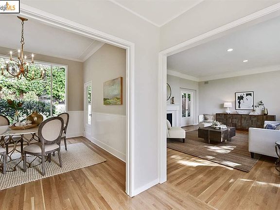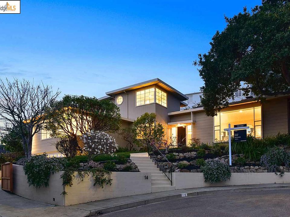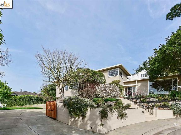 Beautifully remodeled and appointed throughout, this sophisticated light-filled Contemporary is located on a sought after tranquil cul-de-sac in Central Piedmont. Prominently sited, dramatic high ceilings, stylish living room/dining room level out to patio with outdoor fireplace. Newly remodeled kitchen, elegant and spacious master suite, two bedrooms with common area on the upper level, all with magnificent Bay views. Office and fourth bedroom on the main level. Gorgeous hardwood floors throughout complete this seamless home with attached two car garage and ideal large yard/play area. Located two blocks from Piedmont's top schools K-12, Mulberry's Market, parks and recreation center.