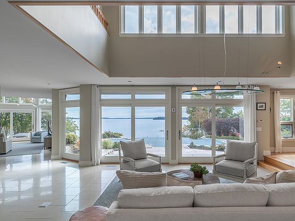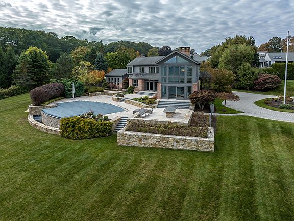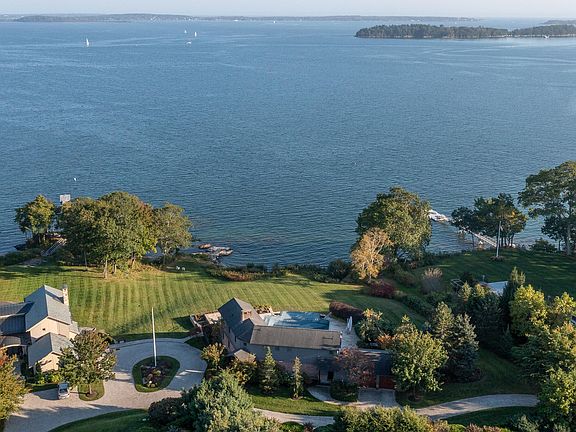 Gracing the shores of Cumberland Foreside, the exquisite 14 Lantern Lane captures all of the beauty of coastal Maine living. This sprawling 1.87-acre estate boasts an approximate 350 feet of owned water frontage, including a sandy beach. Through the gated entry and down the paver driveway you'll find this 3,060 square foot residence features 3 bedrooms, 3 full and 2 half baths, and a two-car garage. Every room in this magnificent home affords breathtaking water views, from the great room and kitchen with windows spanning the full length of the rooms, to the sun-drenched Den with its floor-to-cathedral ceiling windows. The primary bedroom is a sanctuary of its own, complete with a private balcony, a walk-in closet, and an ensuite bath that indulges with a separate shower and a jetted window-side tub, where you can unwind while gazing at the tranquil waters. Stepping outside, the allure of this property continues, with a dazzling infinity edge pool that blends seamlessly with the waters of Casco Bay. Surrounding the pool is a spacious patio where you can savor your morning coffee or entertain guests in the evening, and a private hot tub for ultimate relaxation. Beyond the pool, the potential for a dock beckons boating enthusiasts, while the sandy beach adds to the recreational repertoire of this coastal paradise. 14 Lantern Lane is not just a home; it's a testament to luxury, privacy, and the enchantment of Maine's coastline.