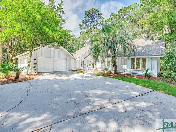 One-story home with long driveway, sets back from street with lots of front yard space & private wooded backyard. BRAND NEW HVAC installed July 2023. Home has 2-car garage w/ Epoxy flooring & utility sink. TOTALLY RENOVATED & open floorplan. Vaulted ceilings & lots of natural light. Gourmet kitchen! Huge island w/ granite counters, seating for 4, stainless steel Maytag appliances, soft close cabinets, & farmhouse sink. Breakfast area. Screen porch, new screens! Sunroom/add’l living space w/ sliding glass doors. Laundry room w/ storage. Oversized owner’s suite w/ private deck. Owner’s bath has walk-in tile shower, dual vanity & walk-in closet. Add’l bedrooms are spacious w/ large closets. Hall bath has vanity with lots of storage space & walk in tile shower. Walk, bike or golf cart to The Landings Marina & Marshwood clubhouse. No flood insurance required. Seller is a licensed GA Real Estate Agent for Pulte Realty of Georgia Inc. This home is not associated with Pulte Homes or PulteGroup