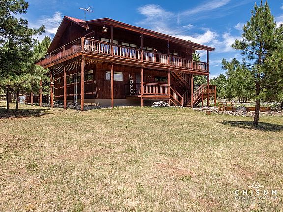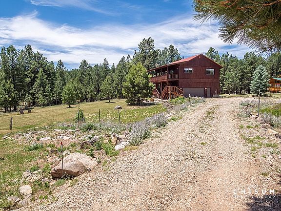 This lovely home has the perfect combination of privacy and easy access to amenities. Located on 1.3 acres with large evergreens, grasslands and stunning mountain views, 14 Las Vegas Circle is a perfect mountain getaway. Additionally, this home borders a greenbelt for protected views and walk on access to our hiking / biking trail network. The double lot has many areas to throw a frisbee or just enjoy in the views, including the large flagstone fire pit area. Inside, the open great room concept is light and bright with vaulted tongue and groove wood ceilings, a wood burning fireplace and solid wood floors. The kitchen has custom pine cabinets, a tile backsplash and saltillo tile floors. The master bedroom featuring an ensuite bathroom and the guest suite with Jack and Jill bathroom are also on the main floor. The lower level includes a large sleeping/game room with a laundry closet, a full bathroom and the two car garage. 14 Las Vegas Circle comes fully furnished so please ask to see an inclusion list. Come relax and play in Angel Fire!