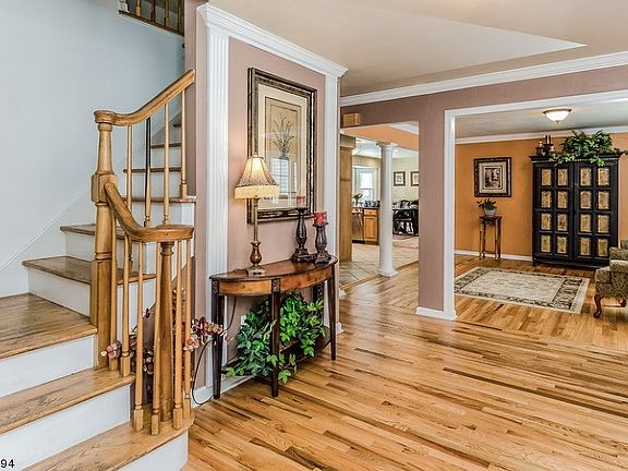 This is the home you've been waiting for in sought after Nestlingwood. Meticulously cared for w/newer windows & furnace, this 4 BR, 2 ??? BA home set on 0.95 acres, w/hardwood floors throughout, boastsmany impressive features including paver walkways, stone front & custom landscaping. A huge deck & patio surround the heated in-ground pool overlooking the pvt wooded property. Another highlight is the eat-in Kit w/SS appl, granite cntrs & tile flr. Entertain in the Fam Rm w/built-in dry bar & wine frig warmed by a gas FP. On the 2nd lvl, the MBR boasts a walk-in closet & newer en-suite BA. 3 add'l BRs, a full BA & Leisure Rm complete this lvl. You & your guests will love the walk-out fnshd Bsmnt that features a Home Theater, Rec Rm & a new door to the back yard. Top rated schools & close to commuting Rts.
