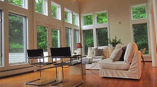 BREATHTAKING VIEWS will make you never want to leave your hillside getaway! Only mins to Northampton and 91. The unique design of this light filled home allows you to see stunning scenes from every window. The open floor plan is perfect for entertaining with a large deck and views of Mt. Toby and Mt Sugarloaf as a backdrop. The master bedroom has a walk-in cedar closet and a balcony of it's own. The architecture and location of this home make it a must see!