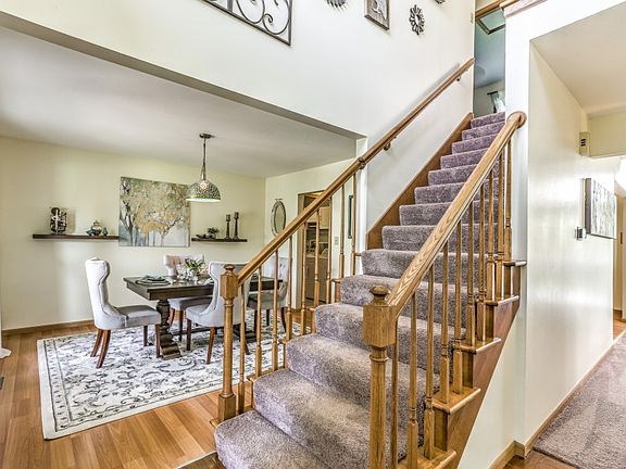 Welcome to this gorgeous 1.5 story 4bd/4ba LAKE ST. LOUIS home. Enjoy the wooded yard that BACKS TO COMMON GROUND & leads TO LAKE. This home boasts nice landscaping, flat/expansive back yard, patio & deck. A soaring 2 story foyer w/ a sunny skylight welcomes you to this fantastic property. The main fl includes formal dining rm, an open family rm with sliding glass door that walks out to deck, soaring vaulted ceiling, a vent less fireplace (w/brick surround) & skylights bring in tons of natural light. The updated kitchen includes custom cabinets, solid surface counter space, backsplash, stainless steel appliances & a breakfast rm that features large bay window. The master bedroom is the perfect oasis for relaxing & includes update ensuite his & hers vanities. The 2nd fl includes balcony, full bath & 3 bedrooms. You are sure to love the finished walk-out basement that includes wood-grain laminate flooring, plenty of entertaining space, fireplace in family room area, bar area & half bath.