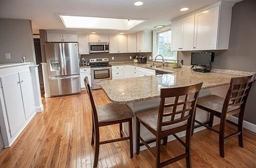 • Kit Dscrp: Main Level, Dining Area, Flooring - Hardwood, Countertops - Stone/Granite/Solid, Cabinets - Upgraded, Skylight, Breakfast Bar / Nook, Closet/Cabinets - Custom Built, Kitchen Island, Fireplace, Closet, Recessed Lighting, Remodeled