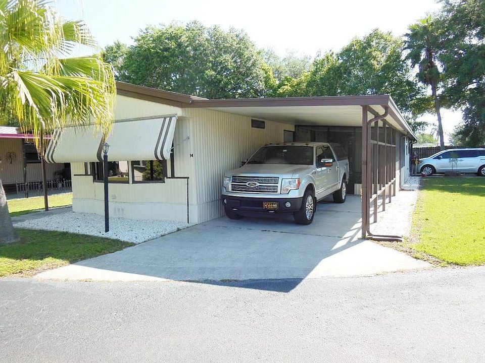 Homes in the Central Leisure Lakes MHP 55+ community, Auburndale, Florida, are on lot leased land. Owning the home, but not the land, you pay a monthly lot rent of $499.00 which covers water, sewer, trash pickup and lawn service as well as giving you and your guest access to the amenities of the community........... Leave your coats, hats and gloves up north and come to sunny Florida where you can kick your shoes off, put your feet up and enjoy retirement life. ........... This 2-bedroom/2-bath home is designed with a split bedroom floorplan and comes completely furnished (turnkey). It is neat and clean and has been well-maintained. You will be able to move in easily!.......... Very seldom will you find a home with 2 driveways and 2 carports for extra parking, but this home has that great feature. .......... Enter into an open living room/dining area/kitchen and feel the spaciousness! The electric fireplace in the living area gives a cozy feel when the "winter" weather drops a few degrees.......... The kitchen is unique and remodeled just this year sporting a cooktop located on an island in the center, new countertops and a couple of built-in niches to add interest and display or storage, as you like. The dining area also has some built-in hutches you will appreciate for storage. Bead board added to walls strategically here and there throughout the home gives visual interest............ The bathrooms have been remodeled from top to bottom (2020) with new sinks, vanities, toilets, tub in one bath and shower unit in other, new faucets and laminate flooring. Master Bath has large linen closet........... Washer and dryer are located inside home. .......... A very large screened in area (12 X 19) adds additional space (not counted in the square footage) and will be a great place to drink your morning coffee or enjoy your evening cocktails. .......... This home is a must see. It will not last long at this price.... Call today to make an appointment for viewing this home.