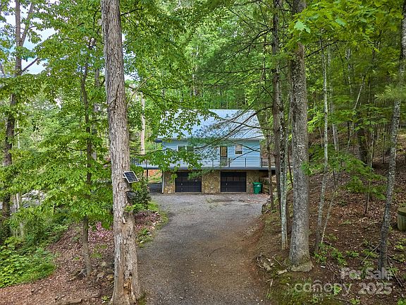 Tucked in the peaceful woods just outside charming Weaverville, this home is a sanctuary offering modern comfort, thoughtful updates, and a tranquil natural setting. Just 15 minutes from downtown Asheville and minutes from Weaverville’s vibrant Main Street, it blends mountain serenity with small-town convenience. The sleek wrap-around deck offers spaces to relax, dine, or entertain—all surrounded by lush forest and dappled mountain light. Whether you’re enjoying morning coffee, grilling dinner, or unwinding in the fresh air, you’ll feel immersed in nature without losing access to town. Step into the cozy living room, where a wood-burning fireplace sets the tone for warm gatherings and quiet evenings. Upstairs, the owner’s suite includes a private balcony—perfect for sunrise views or stargazing. The freshly renovated bath offers ample storage and a spa-like feel.