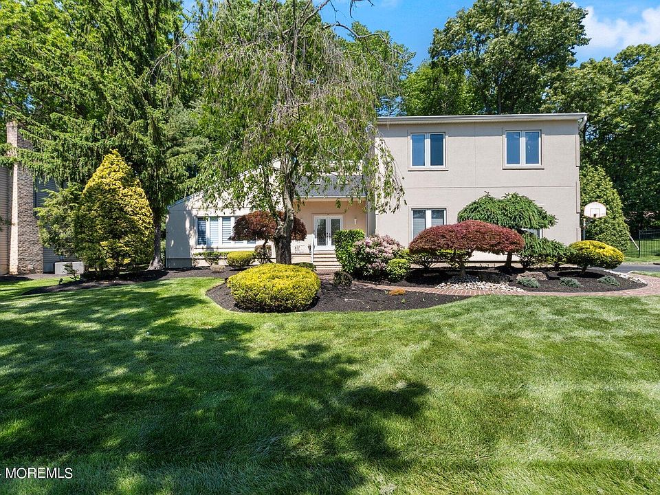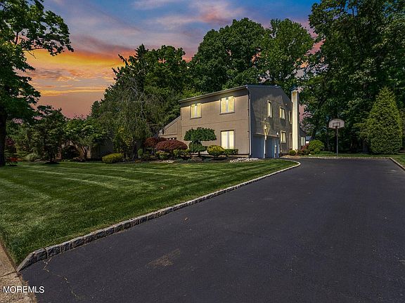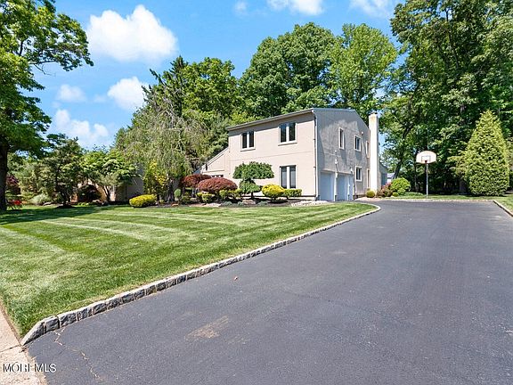 Welcome to this STUNNING CUSTOM CONTEMPORARY home located on a cul-de-sac in the highly sought after Marlboro Woods Development. Upon arrival you'll be greeted by a beautifully landscaped path and gorgeous custom doors that open to a large two story foyer with granite flooring. The HUGE FAMILY ROOM also features high ceilings, built-ins, a fireplace, skylights, double glass doors that lead to a beautiful deck .HARDWOOD FLOORS flow through the great room and through the entire house. The layout of this FRESHLY PAINTED HOME is perfect for ENTERTAINING and lets in a ton of NATURAL LIGHT. The BEDROOM/OFFICE and FULL BATH on the FIRST FLOOR is perfect for guest or IN-LAW SUIITE. You'll love the UPDATED EURO STYLE KITCHEN with skylights and glass doors also leading to the deck and yard.Upstairs features four spacious bedrooms and two nicely finished baths and the primary bedroom has an amazing custom closet with built-ins. The basement is huge and partly finished. The home is equipped with Hot Water Baseboard Heat and Two Zone Center Air.