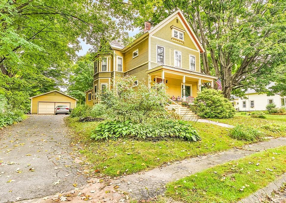 Here's an iconic, Queen Anne Victorian in Bay State Village section of Northampton. With over 3000 square feet of living space and 4 bedrooms, including a 3rd floor suite (once an apartment onto itself.) Some of the elegant features include stained glass windows, wide pine floors mixed with hardwoods. Evan a couple of bay windows too, Beautiful original trim around doors and windows. House has many major updates including high efficiency, Buderus gas-fired boiler, new wiring and plumbing. In just the past few years, the second floor has a new half bath and a large, new, full bath w tub and laundry center. Bay State Village has a good neighborly vibe. A great place for kids as this is the Jackson St school district. This yard has a stand of maple trees and group of raised beds is here for gardens. A 2-car detached garage tops it all off.