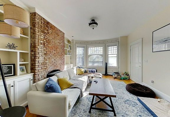 Available Now for a yearly or 6 month term for $3000 per month plus utilities. Pets considered for an additional $50 per month. Spacious and bright 2nd floor apartment in a three family building. This well laid out 3 bedroom unit has 2 full baths and a gas fireplace. Enter into the formal living room with large bay windows facing east for wonderful early morning light. You'll enter facing the north wall with it's gorgeous built in bookcase framing a gas fired stove and exposed brick hearth and wall. Pass through into a large, formal dining room with a bank of three windows to let in even more light. High ceilings and generous dimensions mean most dining room sets will fit in here. Off the dining room are two medium sized bedrooms which are joined by a cleverly designed and beautifully styled jack-and-jill bath. A sleek, modern trough style dual vanity in the common bath area is separated by a door from the water closet and door. This means maximized privacy and usability for roommates or family. Each bedroom has great double closets. The master bedroom is at the back of the apartment. A large dual closet provides terrific storage and the en suite three piece bath adds extra convenience. The kitchen is done in white cabinetry with oak countertops for a clean and bright feeling. Loads of storage on both walls is complemented by an island for additional work space. Off the kitchen is the laundry closet with washer/dryer hookups tenants pay all utilites