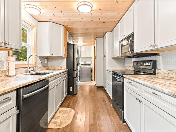 Quietly nested amongst mature trees waits this Ranch style home. This home offers 3 bedrooms and two full baths along with laundry on the first floor. Newly remodeled kitchen, new heat pump all new flooring throughout along with new windows, exterior storm doors and new electrical panel. Easy one floor living with tons or privacy with over 2 acres of land this home sits back nicely from the road. Plenty of room for outdoor activities and a bonus Kwanzaa Hut for all those extras to store, not to mention the 2 car garage. The finished basement offers more room with a family room that comes with a pool table and storage area. Easy access to the turnpike and close to shopping. Crystal Lake is also nearby with a public beach. Come make this your home.