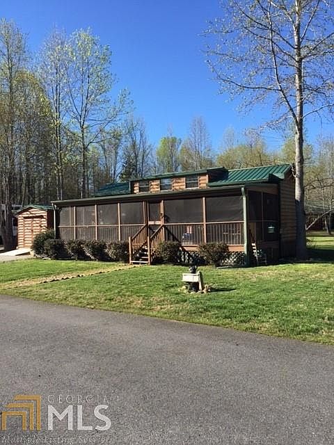 THIS 1 BEDROOM 1 BATH PARK CABIN WITH LOFT FOR EXTRA SLEEPING SPACE HAS A NICE OPEN KITCHEN LIVING ROOM WITH FIREPLACE, HARDWOOD FLOORS. IT EVEN HAS A BATH TUB, LOTS OF STORAGE SPACE, A WALL OF CLOSETS IN THE BEDROOM WITH STORAGE ABOVE AND BELOW. COMES COMPLETELY FURNISHED INCLUDNG FULL SIZE WASHER & DRYER. SLIDING GLASS DOORS LEAD FROM LIVING ROOM TO A LARGE SCREENED PORCH , SEPARATE STORAGE SHED WITH ROOM TO PARK GOLFCART, THE ADJOINING LOT IS AVAILABLE TO PURCHASE AS A PACKAGE WITH THE PARK CABIN FOR YOUR RV OR EXTRA PRIVACY GREAT YONAH MOUNTAIN VIEWS FROM THIS GATED RV COMMUNITY WITH SWIMMING POOL