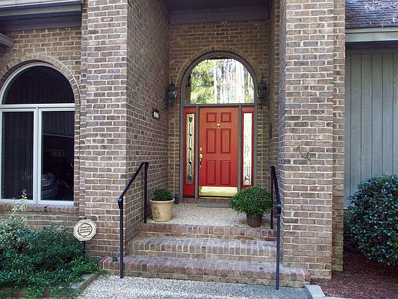 A long, winding drive through a beautifully landscaped yard will bring you to this quiet, secluded water front home in Pinewild Country Club. This lovely home has an exterior of brick and wood and offers loads of charm! The spacious living room has 18 ' vaulted ceilings and a huge window wall with transoms overlooking the lake. The kitchen has custom wood cabinetry with pull out shelving, granite countertops, center island, recessed lighting and loads of cabinet and counter space. The master bedroom enjoys access to a private Carolina Room with tiled floor, cedar ceiling and easy breeze vinyl windows for year round use - beautiful views! Also on the main level is a study off the foyer, a formal dining room, guest half bath, separate laundry room and a combination mud