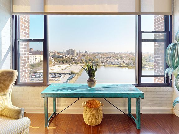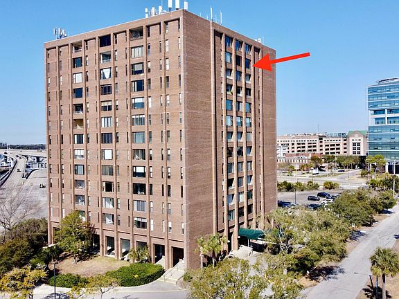 Enjoy the breathtaking views from the 11th floor of this high rise overlooking the rooftops and church steeples of historic downtown Charleston! Private and secure, elegant and sophisticated, guarded entry, elevators to the top, quiet and safe with spectacular sunrise views over the city, Alberta Long lake, the Ravenel Bridge, and the lights of downtown Charleston at night. This open floor plan has high ceilings and newer sound proof windows. The bedroom has dual closets, and a recently remodeled bathroom with granite countertops, designer tile, and modern fixtures. There's also a laundry room for your convenience! Located just minutes from downtown Charleston, and 15 minutes to the beach, this condo is the ultimate combination of style, elegance, luxury, convenience, and location.It is within walking distance to Roper Hospital, MUSC, College of Charleston, West Edge, Publix, and Colonial Lake. There is a dock for your use on the lake and the City Marina is across the street with access to walking trails around the peninsula. Regime fee covers water, sewerage, pest control, air conditioning, outside maintenance and insurance. There is an in-house maintenance staff, off street parking and 24 hour security for your convenience. Mark it as a favorite, and set your appointment to see it today
