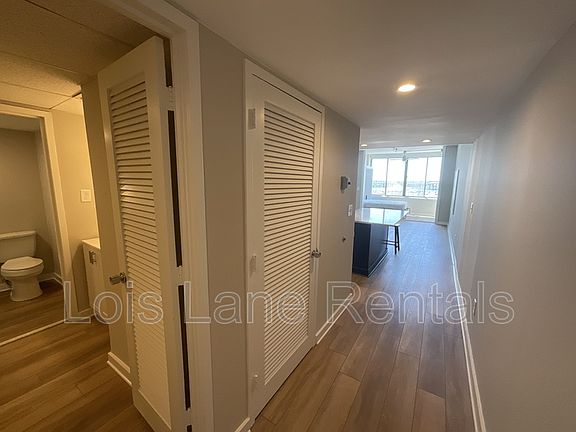 Enjoy sweeping views of downtown Charleston from this bright and thoughtfully designed studio condo, located just across the street from the City Marina and within walking distance to MUSC, WestEdge, and everything the peninsula has to offer. This unfurnished studio features a newly renovated kitchen, ample closet space, and a convenient in-unit washer and dryer. A built-in Murphy bed maximizes living space while maintaining functionality. Large windows bring in natural light and highlight the beautiful views. The building offers secure entry, 24-hour security, and includes off-street parking. Stroll to nearby restaurants, the community dock, or take a scenic walk to the Battery and White Point Gardens. Available now for a one-year lease. All utilities are included in the rental price, except internet. No pets allowed. $75 application fee.