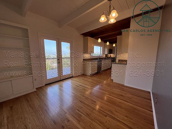 (MAGAD) San Carlos Agency, Inc. offers this conveniently located, three bedroom home near the end of a quiet cul de sac in the heart of Monterey's highly desirable Monte Vista neighborhood. Off the spacious living room/dining combination is a large, sunny deck overlooking the extensive backyard area and views of Monterey Bay. The nicely appointed kitchen is off the dining area and features granite countertops, double sink (with disposal), refrigerator with built-in icemaker, gas range with built-in microwave hood, and dishwasher. The bedrooms all have window coverings and the primary offers an en suite bath (shower only). An attached carport for covered parking in addition to more off-street parking in driveway. Washer/dryer (left as a courtesy to tenant) located in the carport. The home rests on a large lot that will be periodically maintained by Landlord's gardener. Tenant pays standard utilities. No pets. No smoking. Contact San Carlos Agency, Inc.
