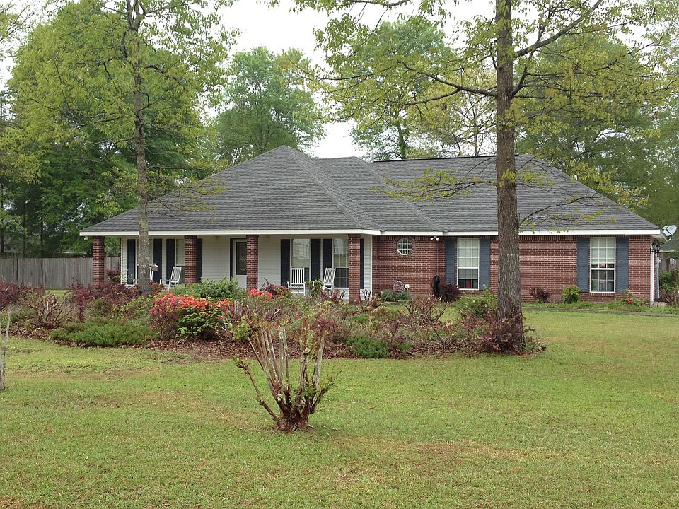 Home features include: *3 BR, 2 BA split plan with large master bedroom with trey ceiling, recessed lighting; master bathroom includes vaulted ceilings, whirlpool tub, separate shower, his & her closets, plant shelf, & double vanity sinks *Formal dining room with trey ceiling *Crown molding & ceramic tile throughout the house with ceiling fans in all bedrooms & family room *All electric, energy efficient heat pump *Kitchen with oak cabinets & pantry, smooth top range, dishwasher, built-in microwave, deep sink, & breakfast area with bay window *Family room is an open & airy plan with 11'3" ceilings, large floor to ceiling brick fireplace with wrap around mantle and hearth; French doors leading to the back porch *Inside laundry room with oak cabinets overhead *Floored attic for storage *Front & back porches with brick pavers on front porch & washed concrete on back porch *Backyard features privacy fencing, garden area, & architecturally similar workshop with half bath, approx. 900 sq. ft. *Landscaping includes a centipede lawn, crepe myrtles, junipers, lorapetalums, lantanas, etc. All flowers are bedded to make mowing fast & easy *Located on a side street with very little traffic, very quiet subdivision with protective covenants, street lights, and neighborhood watch program * Very conveniently located to Hwy. 49, Hwy. 67, & I-10