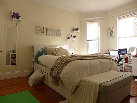 Sun drenched second floor unit Spacious three bedroom One full bath Includes heat and hot water Eat-in-kitchen with dishwasher/gas stove Updated refrigerator Large common area/ living space Gleaming hardwood flooring Professionally managed Front and back porch Steps away from the Green line Plenty of storage space Parking space for rent Laundry in building Prime area between BC/BU